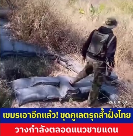 เขมรขนแบกโฮขุดคูเลตรุกล้ำฝั่งไทย วางกำลังตลอดแนวชายแดน