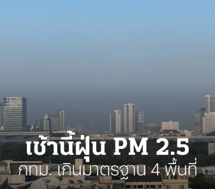 เช้านี้ กทม. ค่าฝุ่น PM 2.5 เกินมาตรฐาน 4 พื้นที่ อยู่ในระดับเริ่มกระทบสุขภาพ