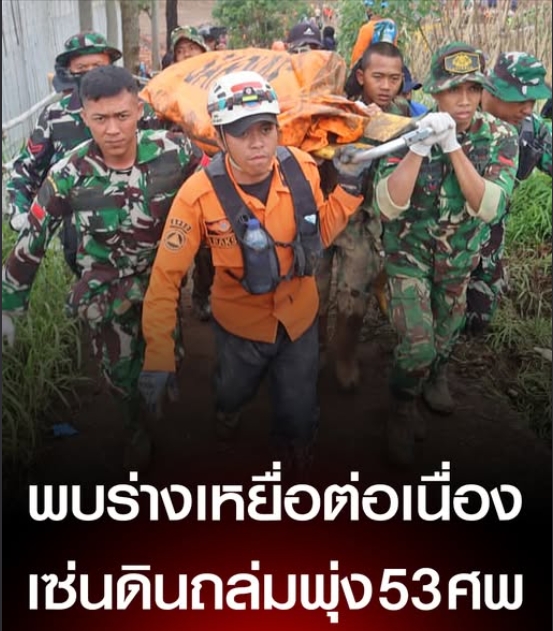 อินโดนีเซีย “พบเหยื่อต่อเนื่อง” – รอยเตอร์ และ สเตรตส์ไทมส์ รายงานวันที่ 1 ก.พ. ว่า หัวหน้าหน่วยค้นหาและกู้ภัยในจังหวัดชวาตะวันตก ประเทศอินโดนีเซีย เปิดเผยว่ายอดผู้เสียชีวิตจากเหตุ ดินถล่ม เมื่อวันที่ 24 ม.ค.ที่ผ่านมา เพิ่มขึ้นเป็นอย่างน้อย 53 ราย และยังมีผู้สูญหายอีก 10 ราย